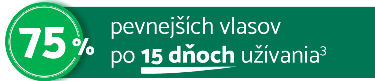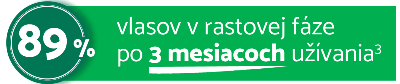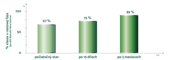 Na základe výsledkov prieskumu, až 93 % Sloveniek považuje výživové doplnky na vlasy ako dobré riešenie problémov s vypadávaním vlasov. Avšak, až polovica z nich nedôveruje ich účinnosti.2 Účinnosť tabliet Bioscalin® NOVA Genina je potvrdená klinickou štúdiou, ktorá odhalila, že už po 15 dňoch užívania je 75 % vlasov pevnejších a po 3 mesiacoch užívania je až 89 % vlasov v rastovej fáze.3