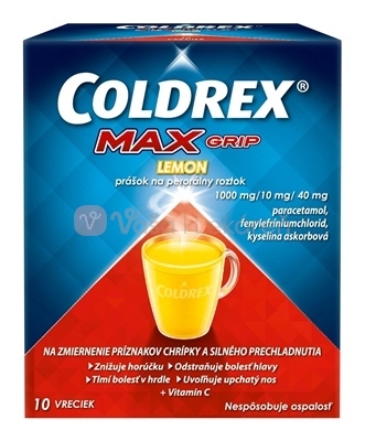 Coldrex Maxgrip Horúci nápoj Citrón 10 vrecúšok s práškom na prípravu nápoja