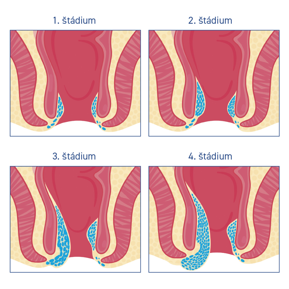 Rozlišujeme 4 štádiá hemoroidálneho ochorenia: