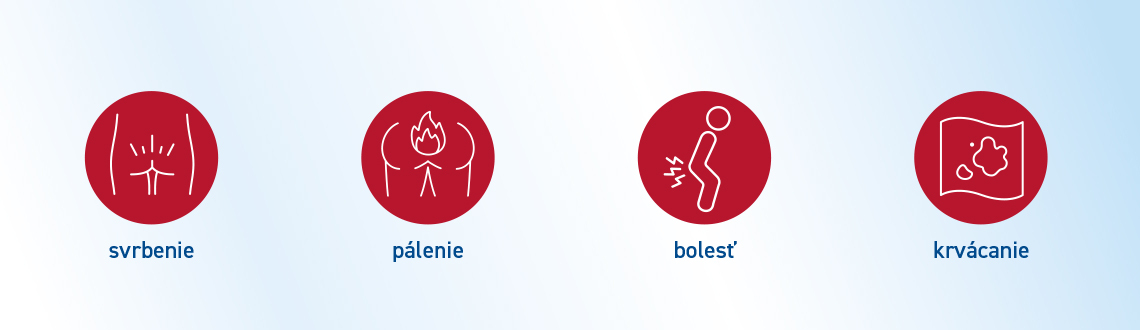 Hemoroidálne ochorenie sa najčastejšie prejavuje svrbením, pálením, bolesťou a krvácaním. Podľa prieskumu považujú pacienti za najnepríjemnejší príznak hemoroidov práve svrbenie, ktoré sa často objavuje už v počiatočných štádiách ochorenia.