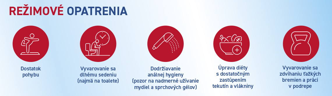 Liečba hemoroidálneho ochorenia závisí od jeho závažnosti a vyžaduje komplexný prístup. Kľúčovú úlohu zohráva celková liečba vo forme perorálnych tabliet s obsahom flavonoidov. Neoddeliteľnou súčasťou liečby sú režimové opatrenia, ako dostatok pohybu, úprava stravy s dostatočným množstvom vlákniny a tekutín. Na zmiernenie príznakov sa odporúča aj podporná lokálna liečba pomocou mastí alebo čapíkov na hemoroidy.