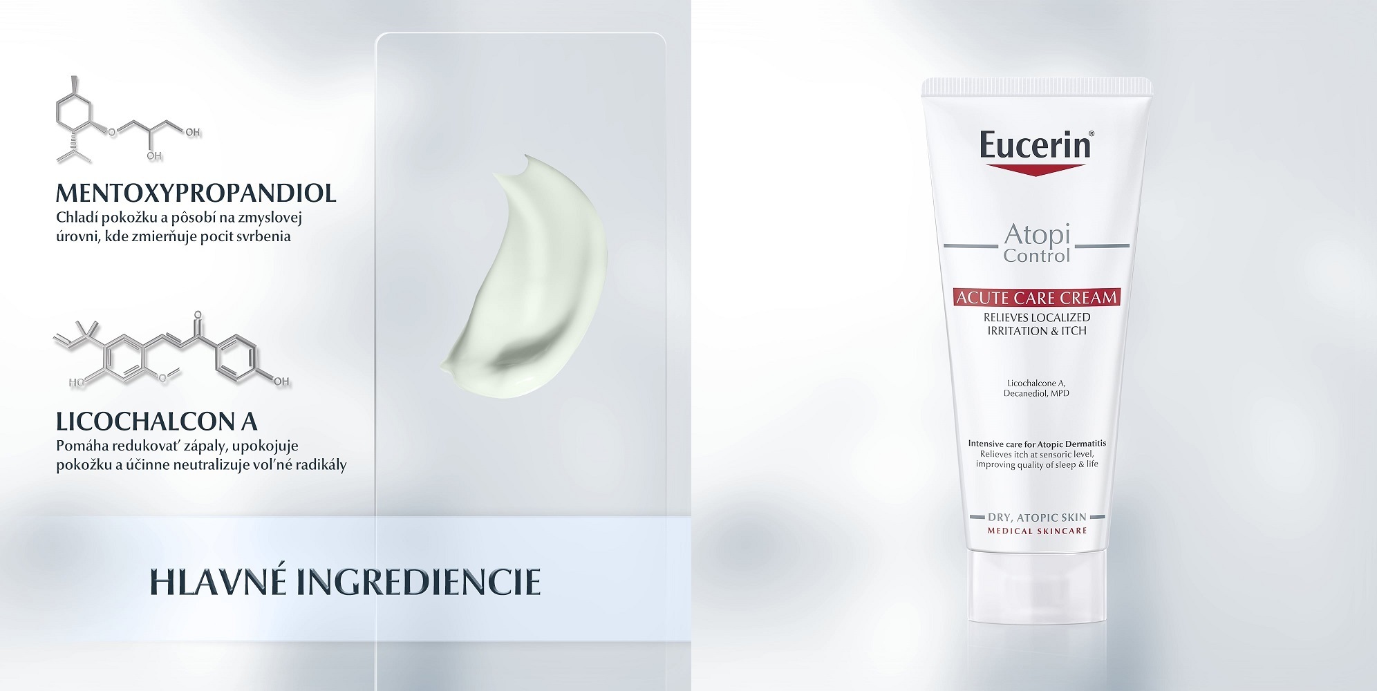 Atopická pokožka je suchá, dráždivá a svrbí. Toto svrbenie núti ku škriabaniu, ktoré spúšťa cyklus svrbenie-škriabanie. Príznaky sa postupne zhoršujú a môžu narúšať kvalitu spánku a mať negatívny dopad na kvalitu života. Eucerin AtopiControl Acute krém bol vyvinutý špeciálne tak, aby poskytoval úľavu a intenzívnu starostlivosť pokožke počas akútneho vzplanutia atopickej dermatitídy a atopického ekzému.