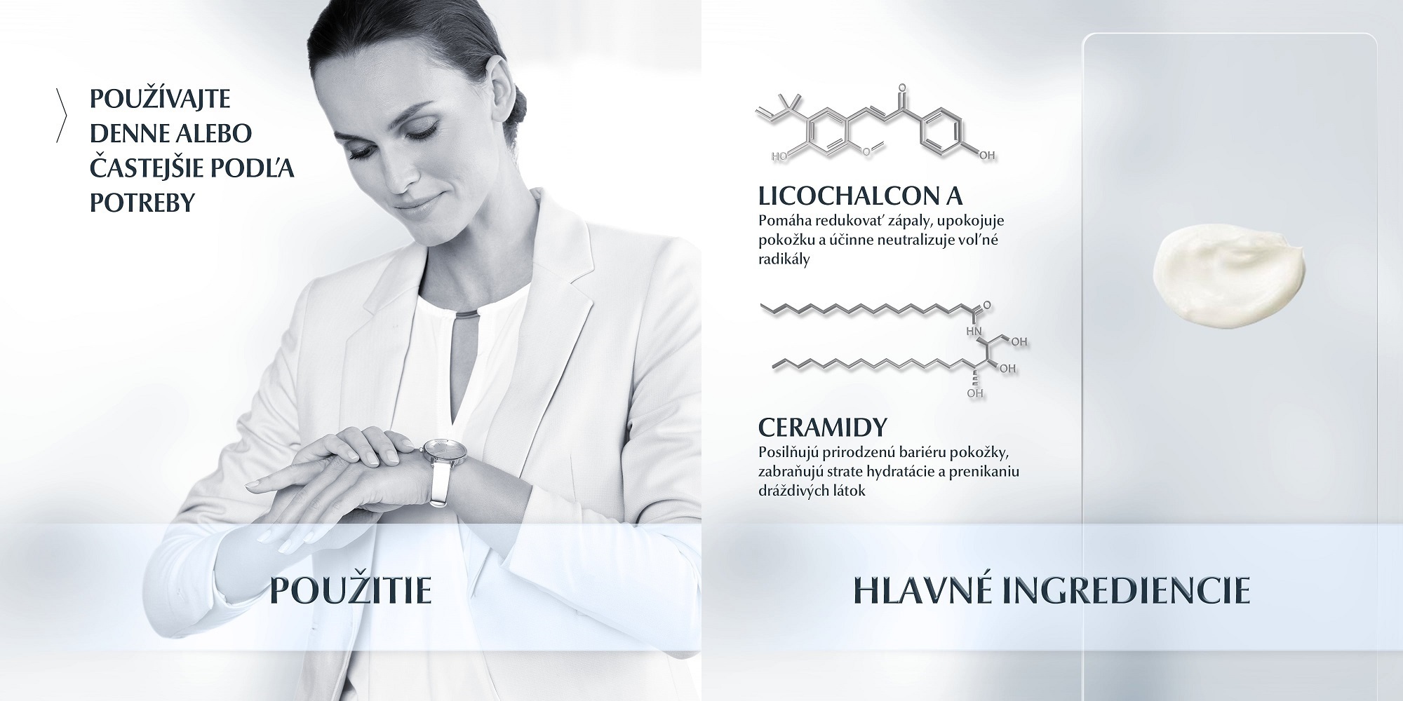 - Ceramidy - posilňujú prirodzenú bariéru pokožky, zabraňujú strate hydratácie a prenikaniu dráždivých látok