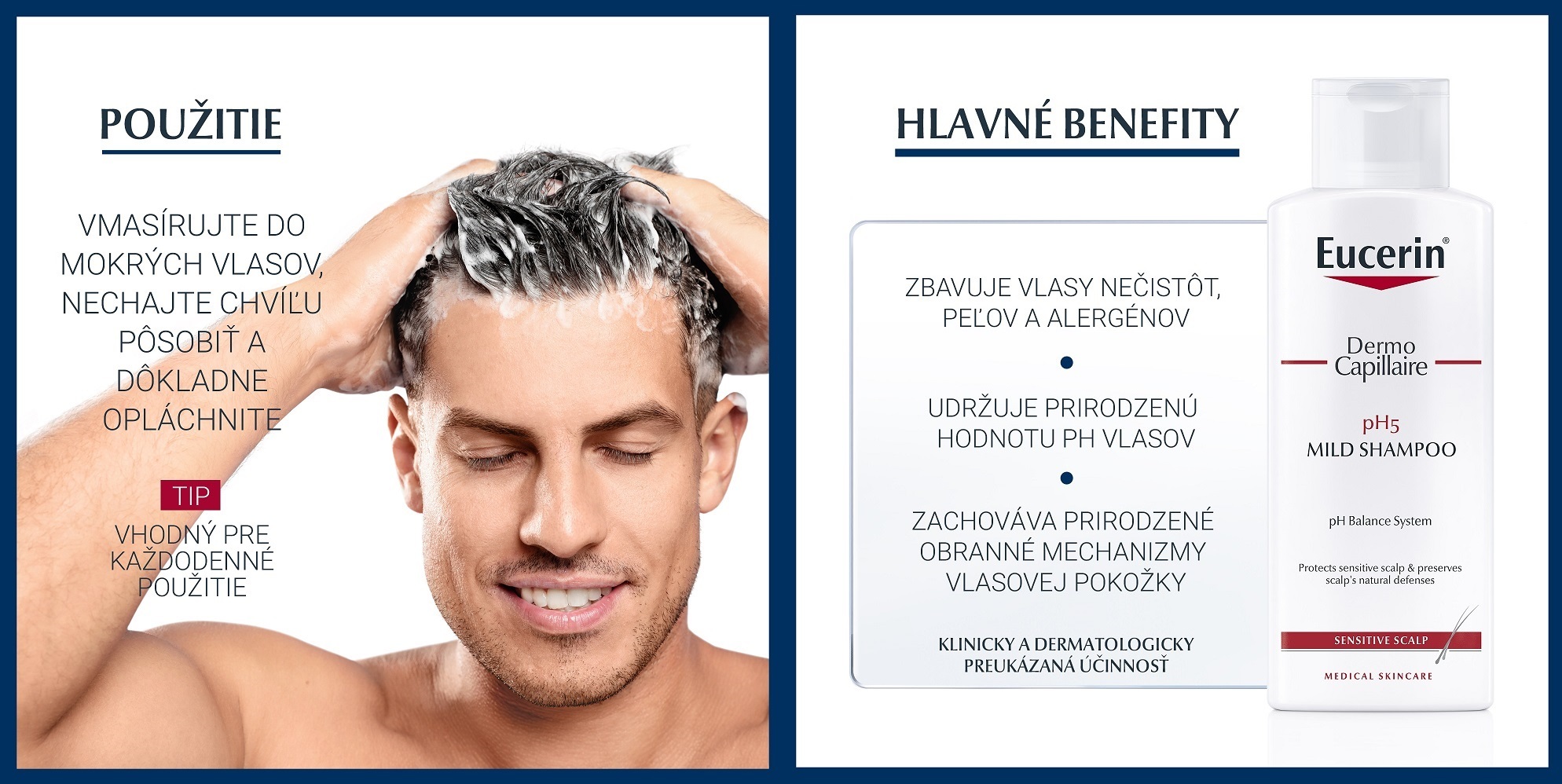 Prípravky Eucerin DermoCapillaire zbavujú vlasovú pokožku mikrozápalov - hlavnej príčiny problémov, ako sú lupiny, suchá a svrbiaca vlasová pokožka, citlivá vlasová pokožka a niektoré formy rednutia vlasov. Šampóny a toniká pre vlasovú pokožku obnovujú zdravú rovnováhu vlasovej pokožky a ošetrujú vaše vlasy od korienkov až ku končekom.