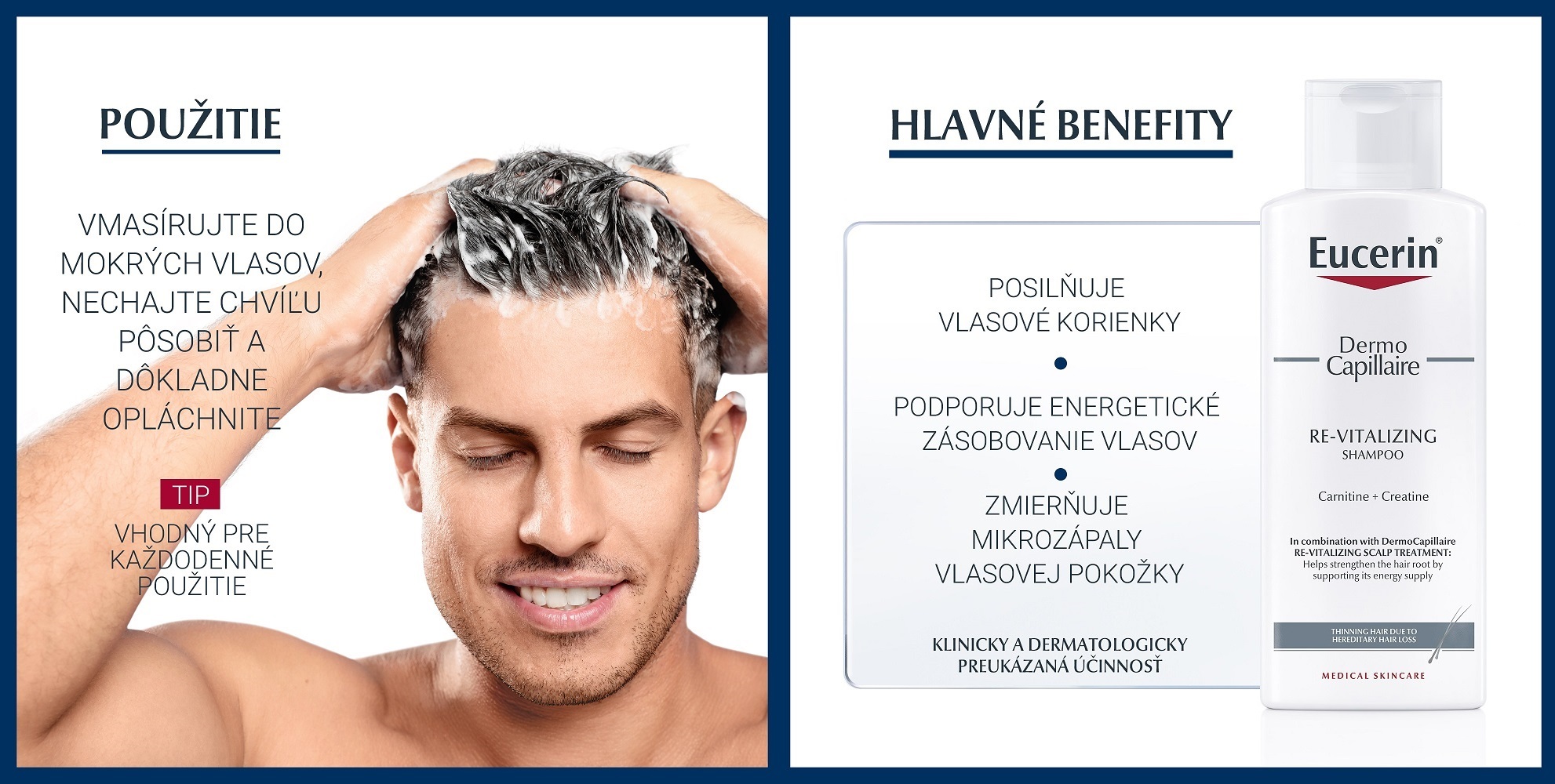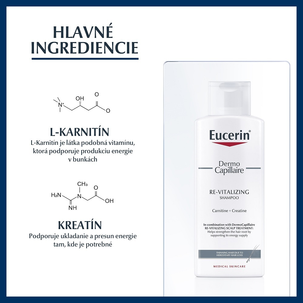 Šampón pre rednúce vlasy proti vypadávaniu je určený pre použitie v kombinácii s Eucerin DermoCapillaire Tonikom proti vypadávaniu vlasov. Pomáha posilňovať vlasové korienky tým, že podporuje ich energetické zásobovanie.