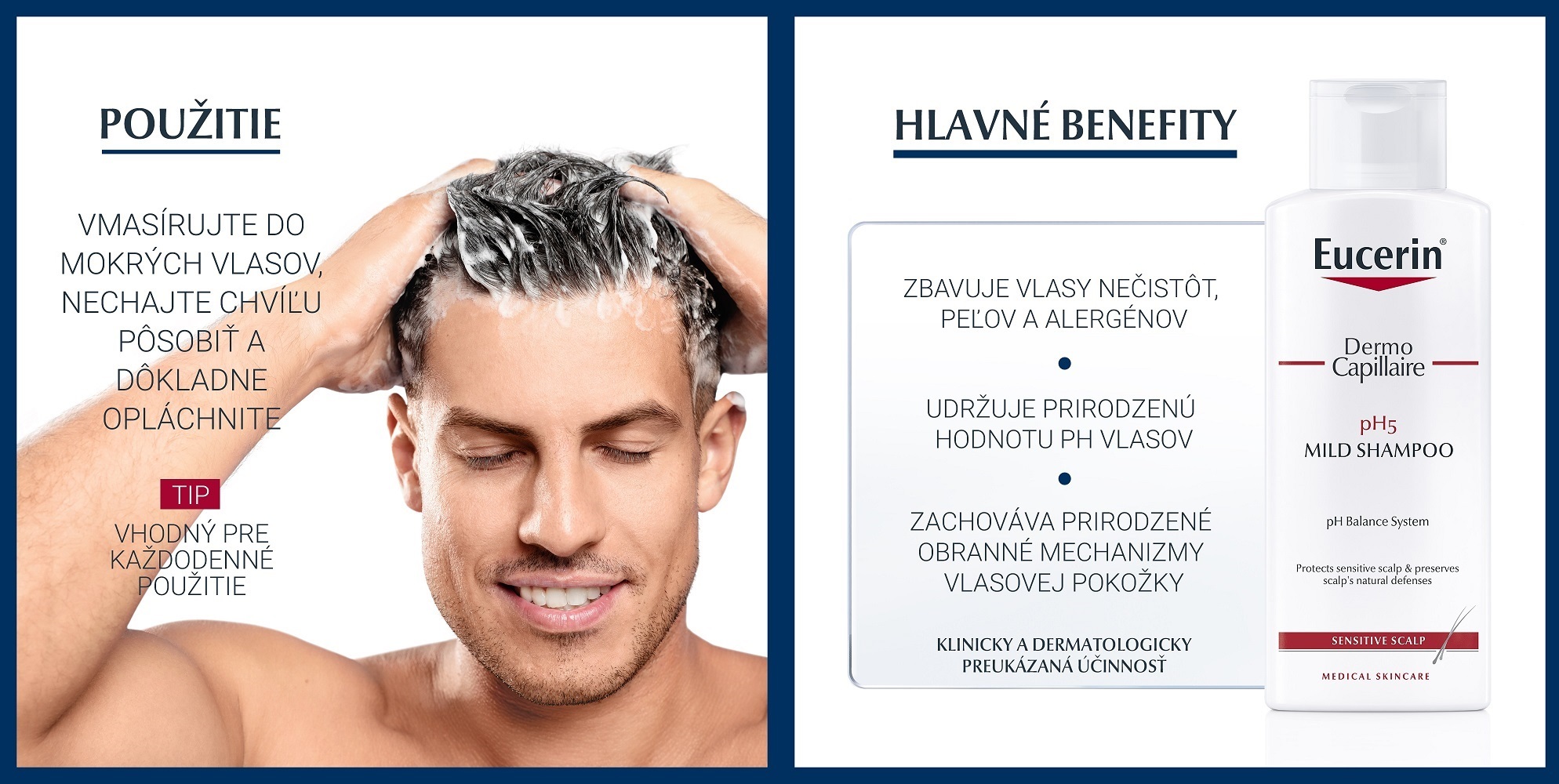 Prípravky Eucerin DermoCapillaire zbavujú vlasovú pokožku mikrozápalov - hlavnej príčiny problémov, ako sú lupiny, suchá a svrbiaca vlasová pokožka, citlivá vlasová pokožka a niektoré formy rednutia vlasov. Šampóny a toniká pre vlasovú pokožku obnovujú zdravú rovnováhu vlasovej pokožky a ošetrujú vaše vlasy od korienkov až ku končekom.
