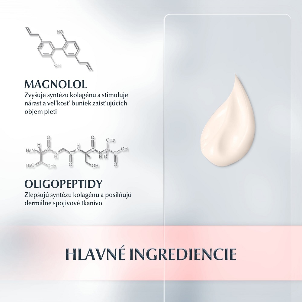 Hydratačný krém proti starnutiu pleti s magnololom, oligopeptidmi a kyselinou hyalurónovou. Vypĺňa hlboké vrásky a spevňuje kontúry tváre na dosiahnutie liftingového účinku