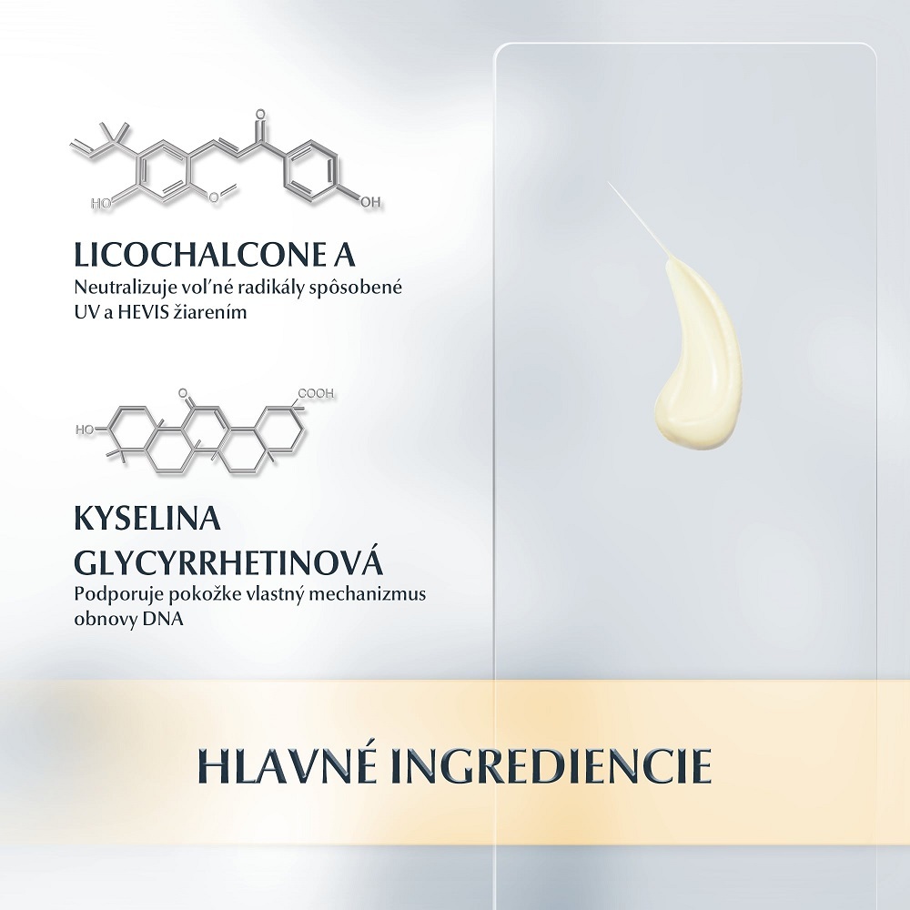 - Licochalcone A - neutralizuje voľné radikály spôsobené UV a HEVIS žiarením