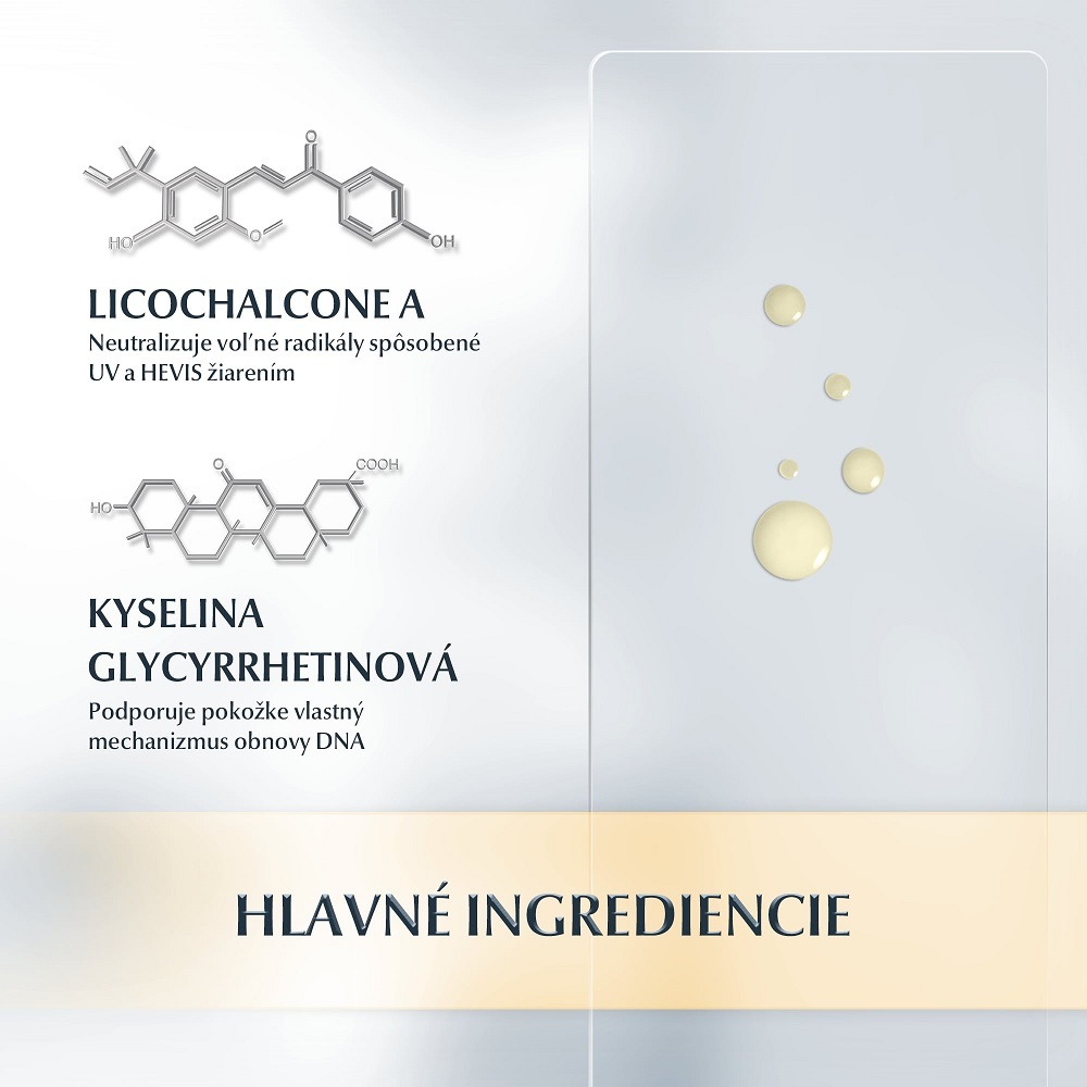- Licochalcone A - neutralizuje voľné radikály spôsobené UV a HEVIS žiarením