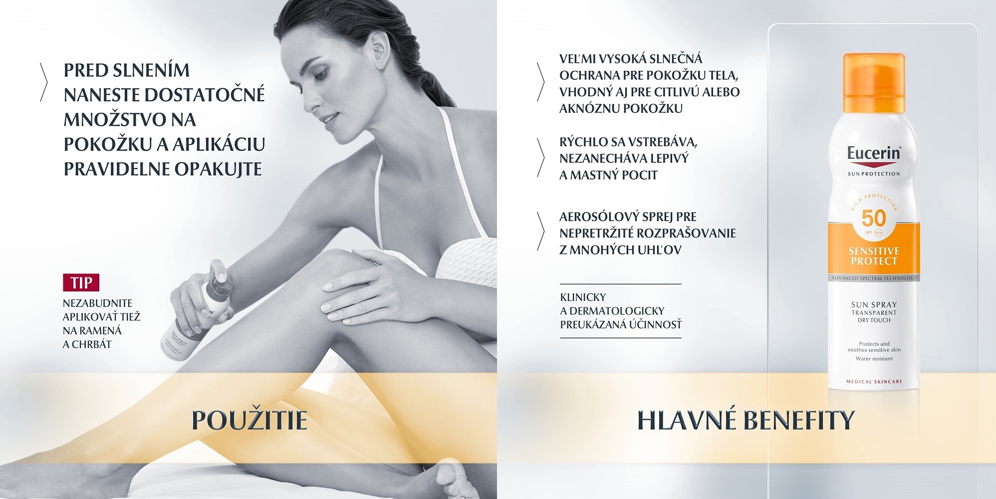 Eucerin SUN SENSITIVE PROTECT SPF 50 sprej transparentný na opaľovanie DRY TOUCH 200 ml