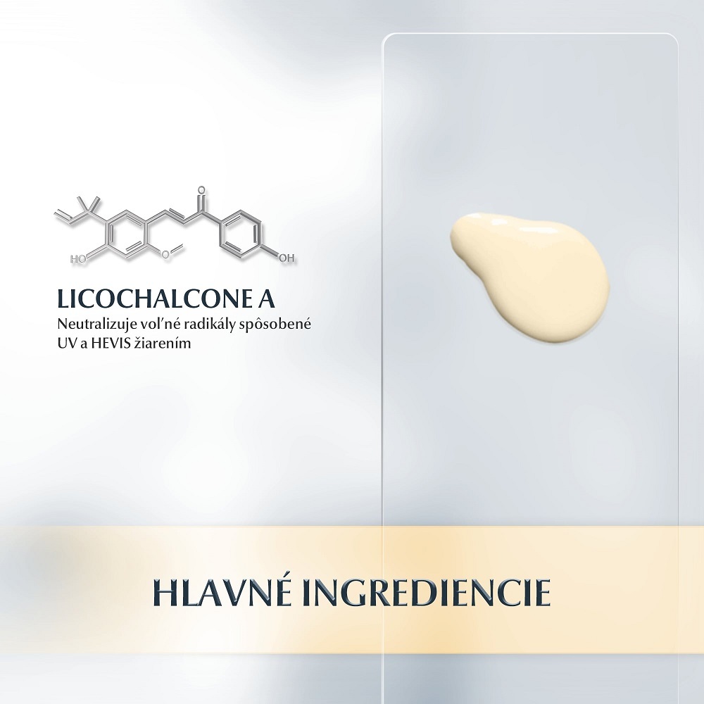 - Licochalcone A - neutralizuje voľné radikály spôsobené UV a HEVIS žiarením