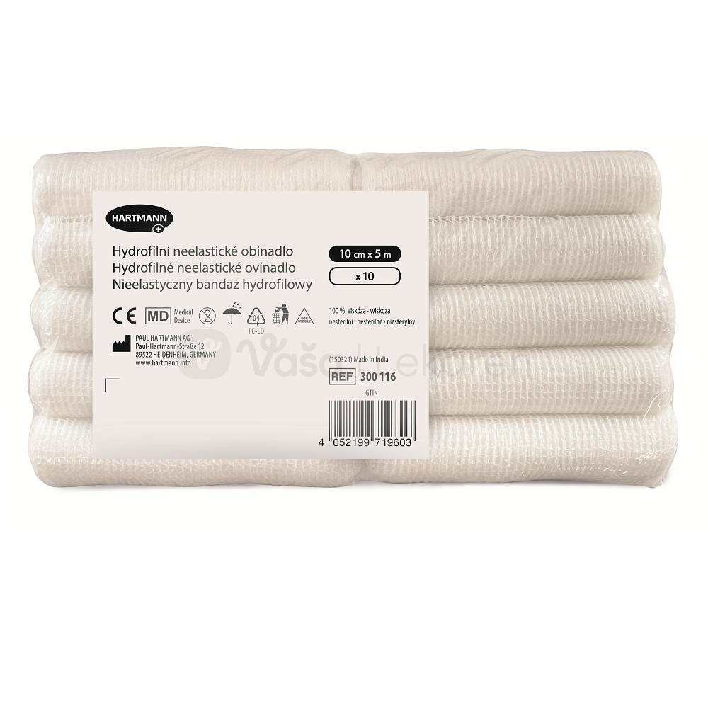 Hartmann Hydrofilné neelastické nesterilné ovínadlo (10 cm x 5 m) 10 fixačných obväzov