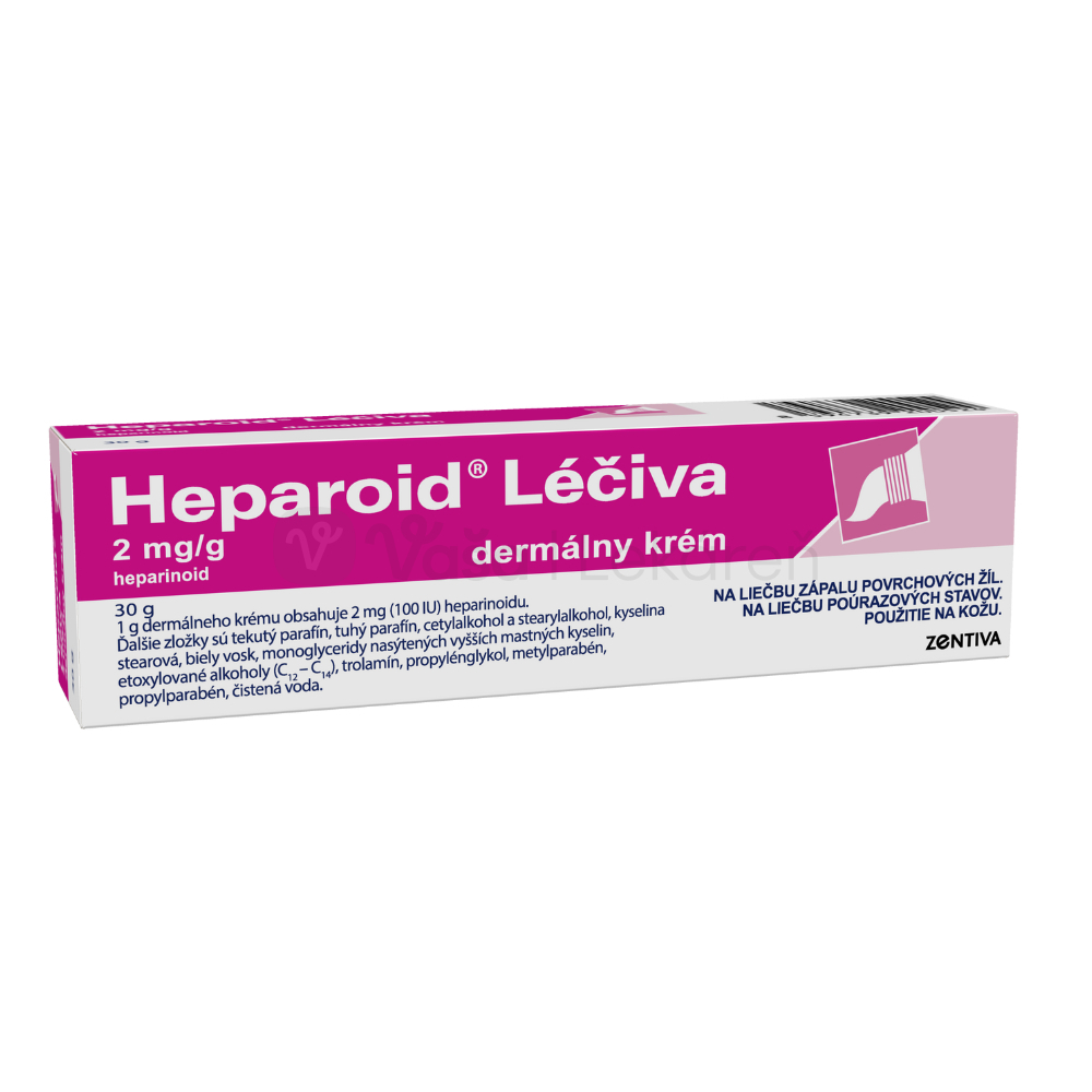 Liek obsahuje liečivo heparinoid.