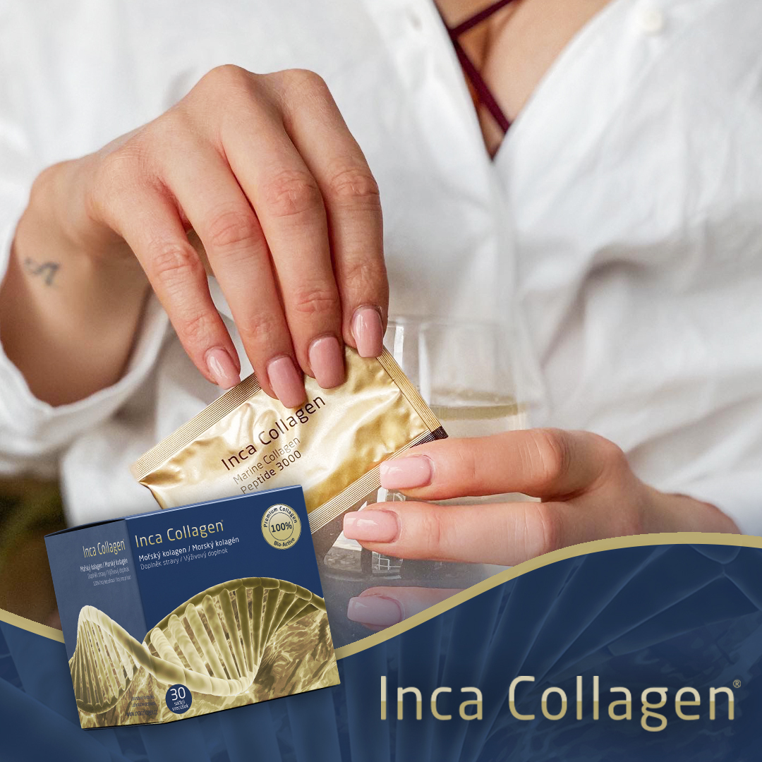 Trojmesačná kúra Inca Collagen, 100% čistý morský kolagén bez prísad. Doprajte si jednotku na trhu medzi kolagénmi, ikonický český hydrolyzovaný kolagén najvyššej kvality, ktorý od roku 2015 získal viac než 250 tisíc spokojných zákazníkov. Šetrný spôsob štiepenia morského kolagénu na homogénne peptidy so zachovanou štruktúrou helixu, ako aj 100% čistota bez akejkoľvek príchute zaisťuje maximálnu vstrebateľnosť a[1] účinok kolagénu na vlasy, pleť, nechty a pohybový aparát.