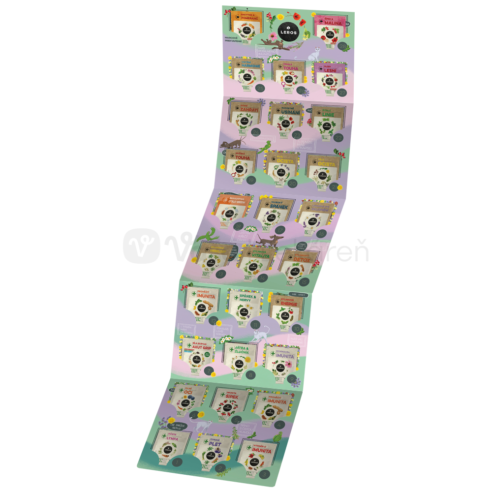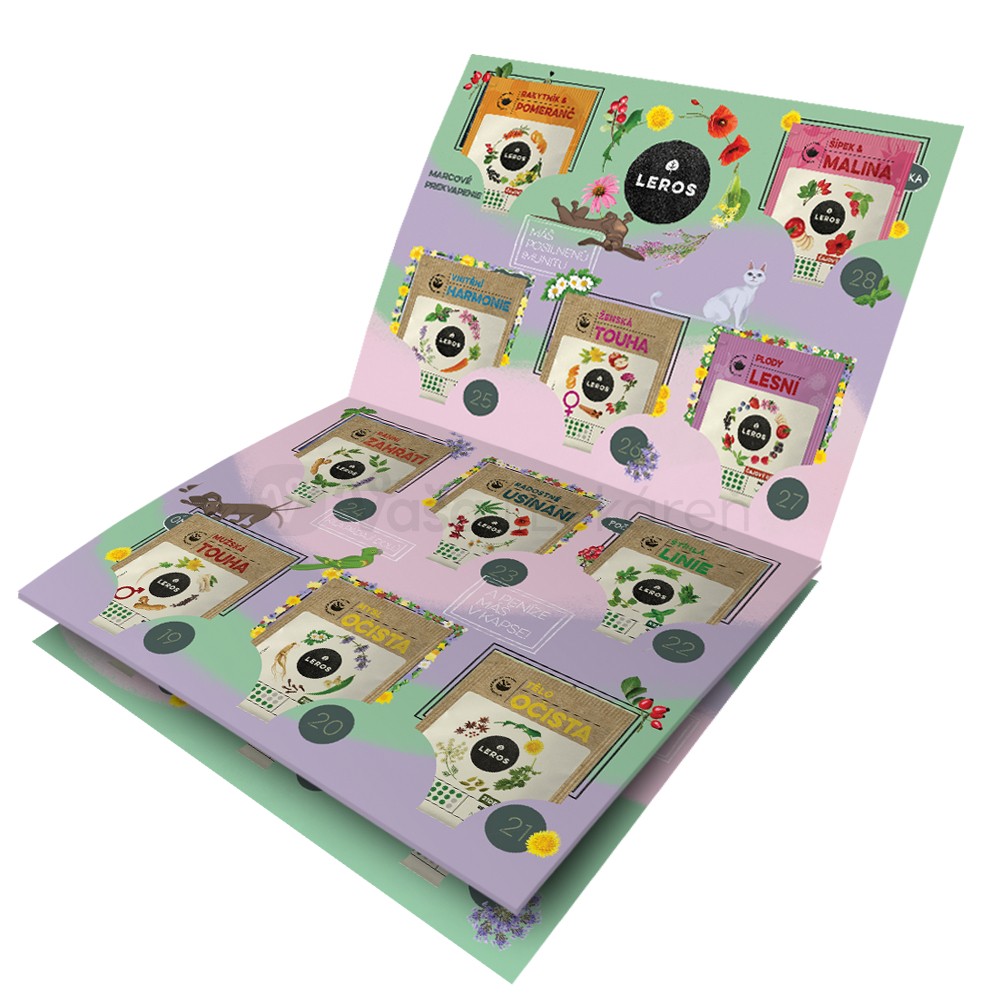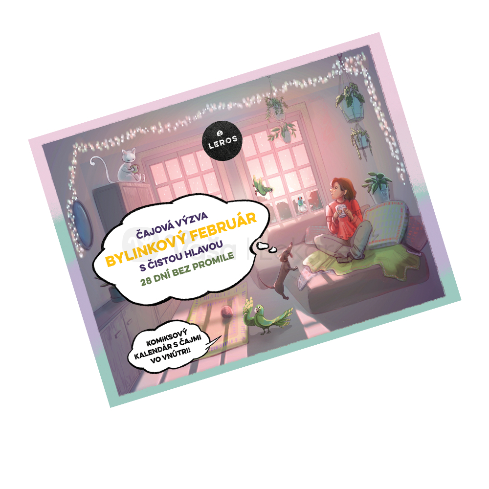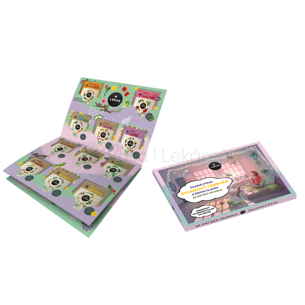 Leros Bylinkový február s čistou hlavou (Darčeková sada čajov) 29 druhov čajov po 1 vrecúšku + komiksový kalendár s čajmi