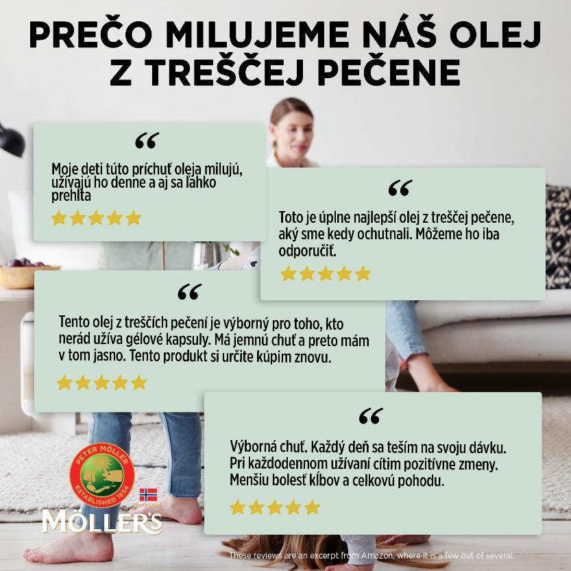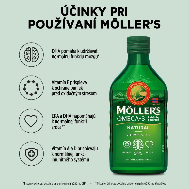 Möller´s je nórska značka, ktorá sa špecializuje výhradne na produkty obsahujúce omega-3 mastné kyseliny. Kladie dôraz na spracovanie čerstvých morských surovín a rokmi vyladený, prísne kontrolovaný výrobný proces.