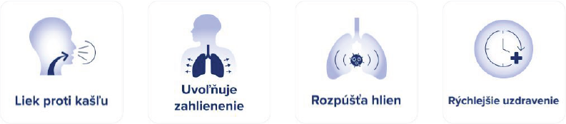 - pomáha uvoľňovať zahlienenie a rozpúšťa hlien,