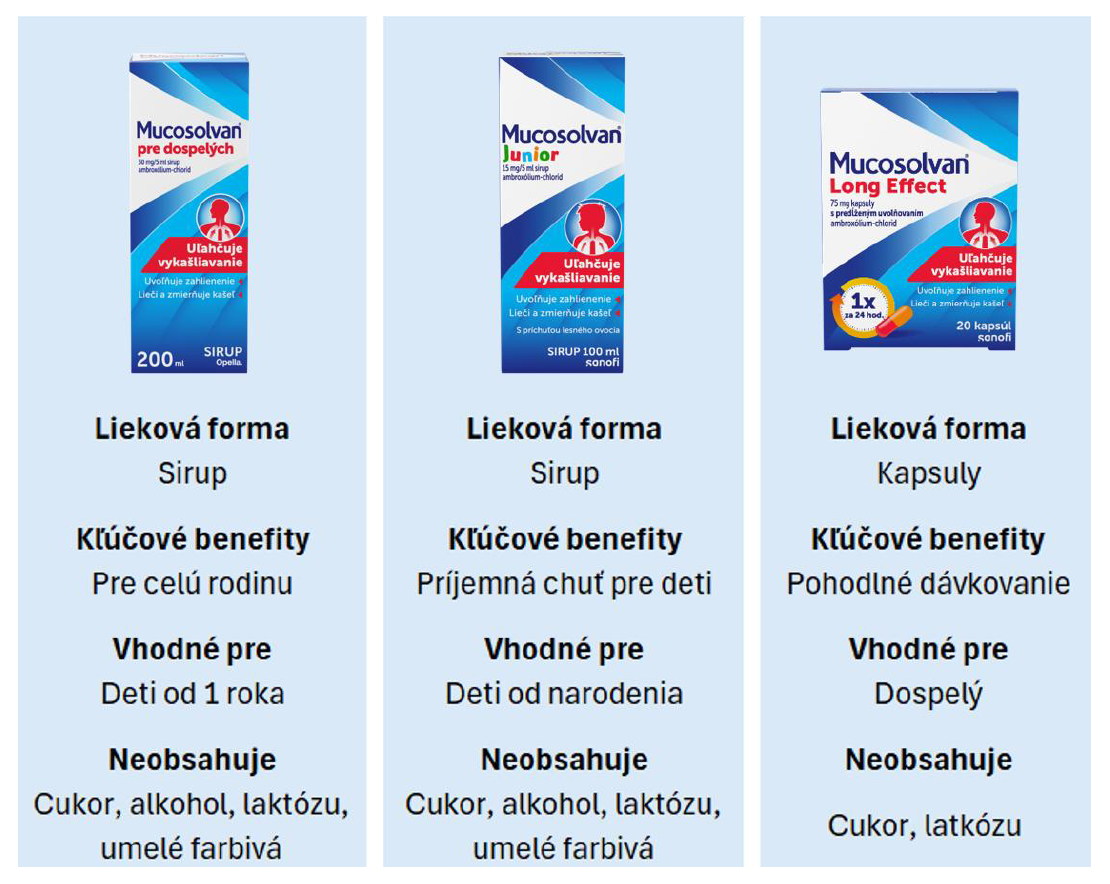 Vďaka svojmu účinku Mucosolvan® podporuje rýchlejšie uzdravenie a návrat k bežnému životu. Je dostupný v rôznych liekových formách.