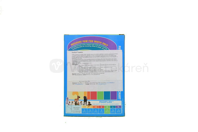 - PawFlex bandáže odpudzujú vodu. Obväz sa nepremáča olizovaním ani pôsobením vlhkosti či malého množstva vody.