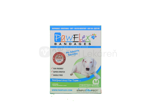 PawFlex sú jednorazové, priedušné, mäkké, vodeodolné, super strečové bandáže s ľahkým zapínaním a rozopínaním, bez lepidla a s už pripojeným nesavým vankúšikom pre medikamenty.