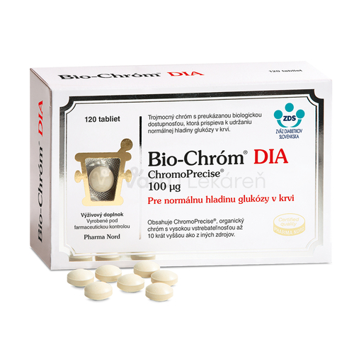 Výživový doplnok Bio-chróm dia s 100 µg dôležitého stopového prvku chrómu v každej tablete. Chróm je v tomto prípravku vyrobený spôsobom, ktorý zaisťuje jeho vynikajúcu biologickú dostupnosť.