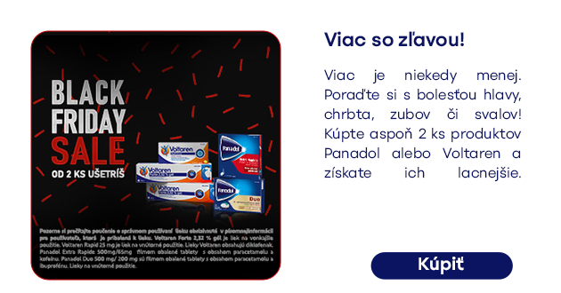 Pripravili sme pre Vás ešte výhodnejšie akcie! Teraz navyše získate ďalšiu zľavu. Nakúpte produkty z týchto akcií v hodnote aspoň 39,90€, zadajte v košíku kód BFZDRAVIE a získate zľavu 4€ na celú Vašu objednávku!