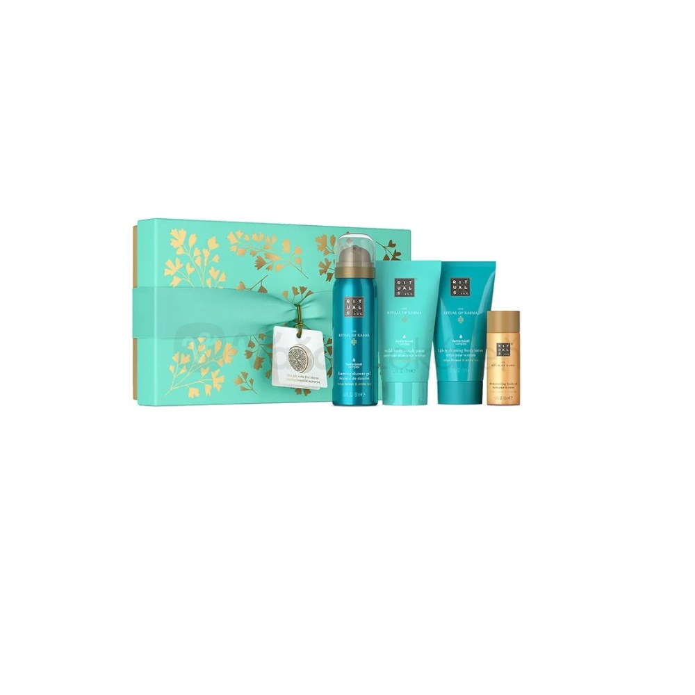 RITUALS of Karma Darčekový set malý 50 ml sprchová pena + 70 ml telový peeling + 70 ml telové mlieko + 30 ml telový olej s trblietkami