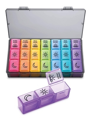 Praktický organizér na ukladanie tabliet so samostatným puzdrom na každý deň v týždni.