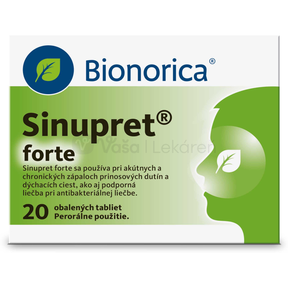 - Sinupret® Forte – tablety s rovnakým zložením, ale s dvojnásobným množstvom účinných látok v jednej tablete, vhodné pri výraznejších ťažkostiach, od 12 rokov.