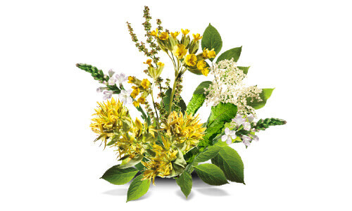 prvosienka - extrakt z kvetov (Primulae floris extractum), horec - extrakt z koreňa (Gentianae radicis extractum), baza čierna - extrakt z kvetov (Sambuci nigrae floris extractum), štiavec - extrakt z vňate (Rumicis herbae extractum), železník - extrakt z vňate (Verbenae herbae extractum)