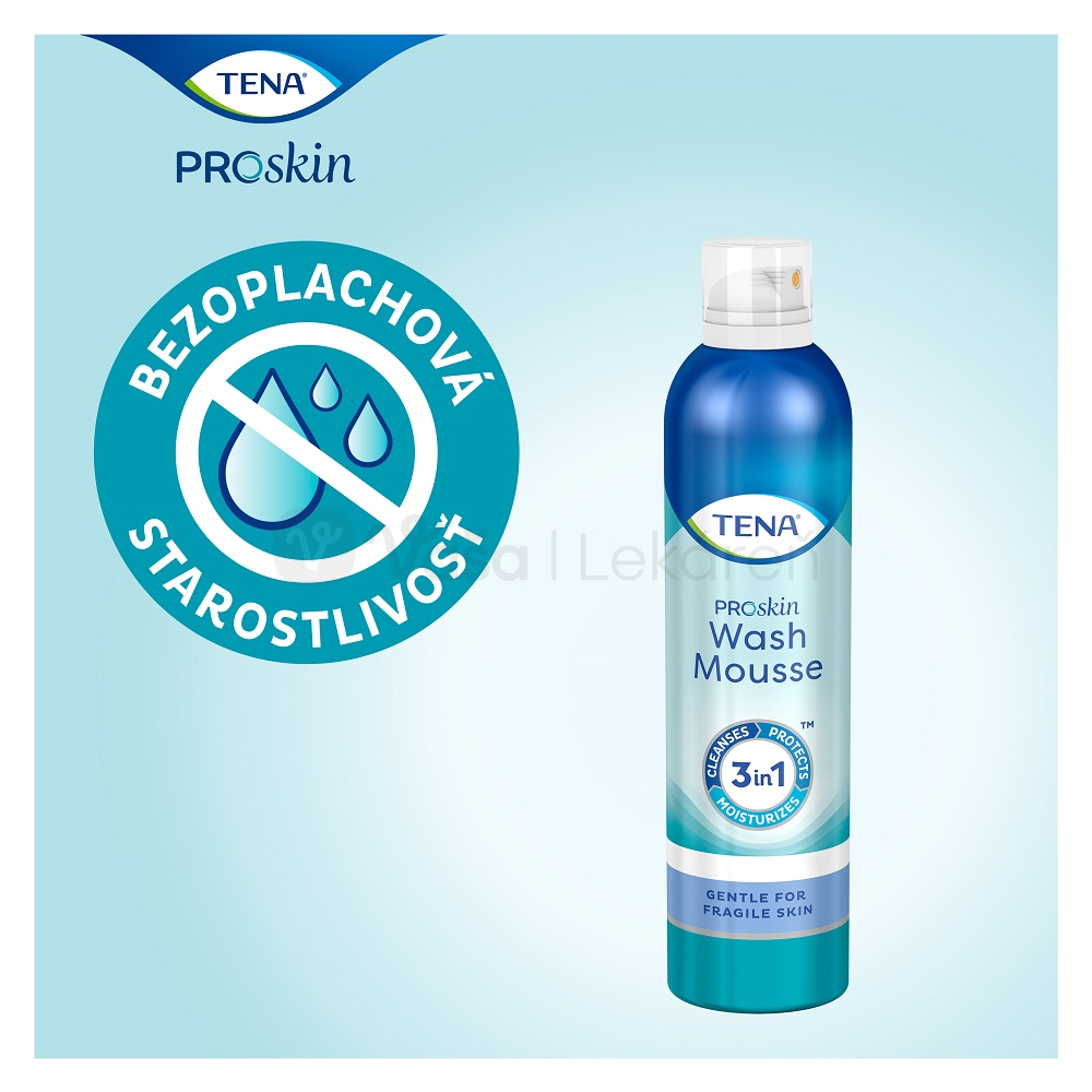 Umývacia pena s receptúrou 3-v-1 TENA Wash Mousse je dodávaná v spreji s jednoduchou aplikáciou, je ideálna na čistenie, regeneráciu a ochranu krehkej pokožky.